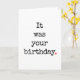 Lá fora: "Foi seu aniversário." Dentro: Vazio