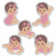 Esta folha inclui 5 adesivos fofos de um doce bebê de cabelo castanho. Perfeitos para decorar cadernos, álbuns de recortes ou lembrancinhas de festa, esses adesivos adicionam um toque encantador e divertido a qualquer projeto ou celebração. Ótimos para chás de bebê, presentes ou diversão cotidiana!