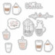 Xícaras de café, canecas de café, café para ir, tudo o que amamos sobre café! Todos os designs são desenhados à mão e colocados cuidadosamente com amor nesta folha para você.