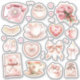 Uma deliciosa coleção de adesivos temáticos rosa com designs encantadores perfeitos para adicionar um toque de doçura aos seus diários, álbuns de recortes ou criações digitais. De corações pastéis a ícones fofos, este conjunto foi feito para inspirar e alegrar seus projetos com elegância e charme.