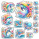 Folha de adesivos Rainbow Dolphin e Ocean Retro