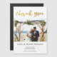Cartões de agradecimentos de casamento com sua própria foto e mensagem curta. Letras de mão douradas falsas. Obrigado de casamento simples e elegante, seu cartão com fotos magnético.