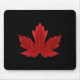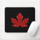 Mousepad preto com a folha de bordo canadense vermelha brilhante.
