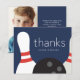 Esta nota moderna, neutra em termos de gênero, agradece-vos que apresenta boliches e bolas de boliche, obrigado branco e mensagem. O verso tem uma foto e uma mensagem personalizada. Clique no botão editar para personalizar este design.