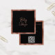 Uma folha de cobre elegante e cartão de visita preto com espaço para o seu nome e informações de contato. Este design inclui um código QR na parte traseira.