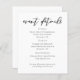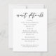 Basta chic e na moda, nossa coleção de casamento formal minimalista apresenta uma elegante tipografia cursiva para seu evento moderno. Os detalhes do evento em negrito apresentam um script preto simples em uma folha de papel branco. Adicione a sua cerimônia e local de recepção, juntamente com opções de acomodação para os seus convidados. Uma lista de hotéis ou direções pode ser incluída.