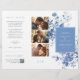 Torne o seu dia de casamento exclusivamente o seu com o nosso elegante e elegante programa triplo de toile floral azul francês. Este produto tem um elemento de cor - você mesmo terá que dobrá-lo em um estilo de brochura. Inclui informações sobre a festa de casamento, a linha do tempo do evento, a ordem da cerimônia, recepção, memória amorosa e obrigados do casal. Este programa elegante é fácil de editar e foi impresso diretamente no Zazzle, permitindo que você crie um na moda e uma adição memorável ao seu dia especial!