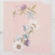 Esta coroa de flores silvestres de cor pastel numa página de papel de carta de fundo de cor em pó é um belo fundo também para convites e cartas.