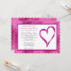 Este convite de casamento com um fundo de folha de alumínio fuschia e um coração de folha de alumínio fuschia aberto.