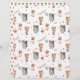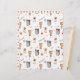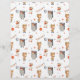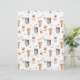 Belo e único papel de álbuns com um padrão com crianças em calculadora, fantasias de urso e pato. O verso do papel tem um padrão de bolinhas em cor laranja. Ilustrada e projetada por Patricia Alvarez.