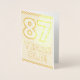 A frente deste design de cartão de saudação de folha de ouro, com tema de aniversário enfático e ousado, apresenta a mensagem "87 ANOS DE IDADE!". O dentro apresenta uma mensagem de saudação de aniversário que pode ser personalizada. Um cartão de cumprimentos de aniversário como este pode ser dado a alguém que comemora seu 87º aniversário. [~Z0000360]