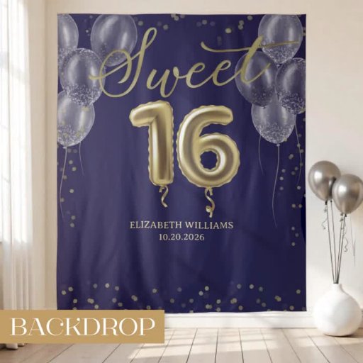 Royal Blue Gold Foil Sweet 16 Bday Balloons PartyCriado por CaMi Designs