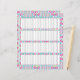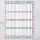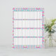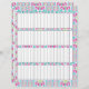 Arte original com flores Stargazer ao fundo. Existem quatro colunas com cabeçalho e 31 linhas numeradas para cada dia do mês. Você pode usar isso para rastrear o que precisar durante quatro meses. Ideias úteis: saúde, peso, calendário de desorganização, exercício.
