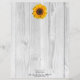 Personalize seu papel de carta único com uma folha de papel personalizada rustica de girassol. Design de papel apresenta um girassol amarelo brilhante contra fundo de grãos de madeira rústica de cinza. Itens de papelaria correspondentes adicionais disponíveis com este design também. Se precisar de assistência com personalização, entre em contato comigo diretamente.