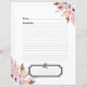 Folha de papel correspondente, insira para nossos ligantes de 3 anéis. Um fundo branco-quic com flores, rosas, prigos e penas de ouro cor-de-rosa. Summer Boho, estilo boêmico.