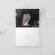Elegante cartão de foto de agradecimento de casamento com folha de rolo floral preto, verde, com folhas de rolo brancas, espirais, cachos e pontos verde-limão em fundo preto. Há uma faixa verde com o texto "Obrigado" na parte inferior e sua foto no interior. Este design sofisticado, elegante e chic é parte de um conjunto de produtos de papel para casamento e é perfeito para um casamento de primavera ou inverno.