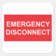 Uma folha de etiquetas adesivas de EMERGÊNCIA DESCONECTAR para os eletricistas a utilizar para cumprir os requisitos do artigo 230.85, ponto E, n.os 1 e 2, do Código Elétrico Nacional de 2023.