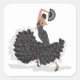Uma dançarina bonito de flamenco num vestido preto fluindo com fã.