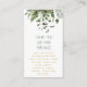 Placa de gabinete de texto divertida para dizer obrigado aos seus clientes e incluir no seu pacote de pedidos. Folhetos e plantas com obrigado, mensagem em verde e ouro.