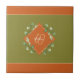 Adicione um toque especial à sua casa neste feriado de outono com este azulejo de cerâmica decorativa, cor de laranja e verde, quente e confortável. O azulejo tem um fundo laranja e verde com o sobrenome da sua família e inicial no centro. Ao redor do seu texto personalizado está uma bonito coroa verde. Este azulejo de outono é um bom exemplo para o excelente do Dia das Bruxas e a Ação de Graças, e é também um presente pensativo e personalizado!