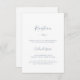 Este cartão de recepção azul empoeirado é perfeito para um casamento elegante. A design apresenta uma simples silhueta verde em azul-ardósia com estilo clássico minimalista. Personalize este cartão de recinto detalhado com as informações de recepção e inclua também o endereço do seu site de casamento!