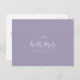 Este cartão-postal de lavanda de folha mínima é perfeito para um casamento de boho. A design apresenta uma simples silhueta verde de folha em púrpura lilás pastel com estilo minimalista de jardim boêmico. Este cartão postal de resposta do casamento pergunta aos convidados qual refeição eles gostariam na sua recepção.