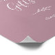 Este mínimo de cartões de capa de folha e sinal de poster de presentes é perfeito para um casamento ou chá de panela de boho. A design apresenta uma simples silhueta verde folha em cor roxa romântica, cor-de-rosa, com estilo minimalista de jardim boêmico. A linha de texto na parte inferior da placa pode ser personalizada com a data, os nomes da noiva e do noivo, ou uma mensagem curta como "Obrigado". Este sinal pode ser usado para um casamento ou qualquer evento ou festa.