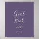Este mínimo sinal de poster do livro de hóspedes roxo de ameixa de folha é perfeito para um casamento de boho. O design de tom de joia apresenta uma simples silhueta verde de folha em uma violeta azul escura roxa com estilo boho minimalista.