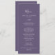 Este mínimo de janto púrpura de ameixa de folha e cartão de cardápio de bebidas é perfeito para um casamento de boho. O design de tom de joia apresenta uma simples silhueta verde de folha em uma violeta azul escura roxa com estilo boho minimalista. Este menu apresenta o menu janto de um lado e o menu bebidas no verso. Pode ser utilizado para recepção de casamento, janto de ensaio ou qualquer evento.