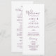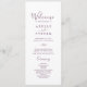 Este programa de casamento de beringela de folha é perfeito para um casamento de boho. A design apresenta uma simples silhueta verde folha em uma cor roxa escura romântica com estilo minimalista de jardim boêmico. Inclua o nome do casal, a data e o local do casamento, a mensagem do obrigado, a ordem de serviço, a festa de casamento e um memorial "em memória amorosa" opcional.