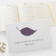 Convide seus convidados de casamento para compartilhar seus desejos e sabedoria com este moderno livro de convidados de casamento, apresentando uma folha púrpura empoeirada minimalista. Seus nomes e a data do casamento aparecem abaixo em letras clássicas de serif. O livro reverte para uma cor consistente. Para ver temas de casamento outono mais minimalistas, visite www.zazzle.com/dotellabelle