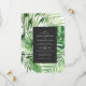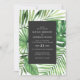 Folha tropical e convite de casamento de aquarela de guião. Texto de script pintado à mão. Parte de uma coleção de tendência de verão. A cor de fundo pode ser alterada.