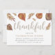 Convide amigos e família para comemorar o Dia de Ação de Graças juntamente com estes elegantes e encantadores convites para jantas de Ação de Graças que apresentam "agradecimento" em um roteiro de caligrafia manuscrita, cercado pela queda das folhas do outono em tons quentes de aquarela. Personalize com seus detalhes de janto de Ação de Graças usando os campos modelo.