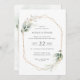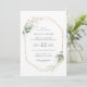 Folhagem de aquarela e efeito de ouro - convite de casamento geométrico.