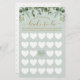 Jogo de chá de panela de Bingo Elegante e na moda. Jogo divertido para jogar na sua festa de chá de panela. Design apresenta um design moderno e estilo com nossa folhagem de aquarela pintada à mão e verde com uma grade de bingo de coração branco. A caligrafia elegante na cor dourada e a paleta verde-menta criam uma aparência moderna. Trabalho de arte por Moodthology Papery.