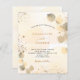 Um fundo de cor aquosa de ouro decorado com ouro eucalipto e pó dourado falso. Personalize e seu nome e detalhes da cerimônia. Letras pretas e ouros coloridas. Traseira: fundo de cor d'água do ouro