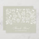 Estas notas de agradecimento planas verde pálido são uma excelente opção impressas em papel de 110 lb e apresentam um padrão de folhas brancas, as palavras "Obrigado" e seu nome em letras brancas elegantes. Notas de agradecimento perfeitas para o seu casamento, chá de noiva, chá de bebê, aniversário, aniversário de casamento, formatura ou qualquer evento especial. Os envelopes BRANCOS são opcionais. Mede 4,5" x 5,6", mas você pode escolher entre 3 tamanhos de papel. MAIS CORES em nossa coleção.