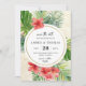 Folhagem tropical magnífica salve o cartão de data com plumeria, palma da ventoinha, palma de areca, folhas de monstera e outras folhagens tropicais com os detalhes do seu casamento em fontes modernas.O cartão pode ser facilmente personalizado para qualquer evento adicionando os detalhes do evento, estilo de fonte, tamanho de fonte e cor e o texto de sua escolha, clicando no botão 'Personalizar'.