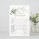 Este design apresenta uma ilustração em aquarela da folhagem verde e dourada - Jogo do Word Scramble do Chá de fraldas. Na parte superior da placa - confete de efeito ouro. Desembaralhe as palavras do bebê. Chave De Resposta: Pó De Bebê, Garrafa, Cobertura, Fraldas, Lullaba, Assento De Carro, Termômetro, Shampoo, Pacificador, Battle, Bassinet, Cadeira Alta, Monitor De Bebê, Rolha, Nursera