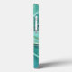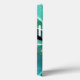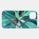 A obra de arte original de MaeFlowers nesta capa de iPhone 13 é um design no estilo de uma bolsa de mão, com uma aba e fecho de botão. Foi criada a partir de uma fotografia original de folhas em uma cerejeira recém-crescida. A foto aproximada foi tirada de cima, mostrando o turbilhão de folhas enquanto elas crescem. As folhas estão em tons variados de verde, desde o verde azulado escuro na base até um verde mais amarelado no crescimento mais novo. Os caules das folhas têm uma cor vermelho-púrpura. A foto tem texturas de tecido, a aba com acabamento em aqua como seda, e a parte inferior da bolsa como uma tapeçaria mais áspera. O fecho de botão redondo azul-aqua é aparado em um anel colorido dourado, e há lantejoulas roxas em anéis dourados aparando a