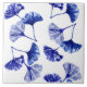 Impressões azuis e brancos são clássicos. Esta design azul e branca apresenta um padrão aloprado de folhas de gingko. Este padrão é excelente para a parede do banheiro ou uma borda decorativa na cozinha.
