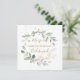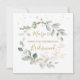 Este design apresenta uma ilustração de uma bela coroa botânica com folhas esverdeadas e ouros em estilo aquarela. Na parte superior da placa - configuração do efeito do ouro. Você pode ajustar o texto de acordo com suas necessidades. Cartões Elegantes de Gratidão por Casamento, Chá de fraldas, Chá de panela ou Aniversário de Casamento.