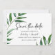 Guarde moderno e elegante o cartão de data com folhas de salgueiro de cor d'água e os detalhes do seu casamento em fontes modernas.O cartão pode ser facilmente personalizado para qualquer evento adicionando os detalhes do evento, o estilo da fonte, o tamanho da fonte e a cor e a redação da sua escolha clicando no botão 'Personalizar'. Adicione sua foto favorita na parte traseira do cartão.