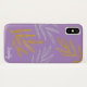Apresenta folhas botânicas desenhadas à mão em folhas de ouro e prata simuladas, em fundo violeta. Personalize com um nome.