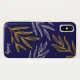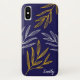 Apresenta folhas botânicas desenhadas à mão em folhas de ouro e prata simuladas, em fundo de marinho. Personalize com um nome.