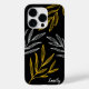 Apresenta folhas botânicas desenhadas à mão em folhas de ouro e prata simuladas, em fundo preto. Personalize com um nome.
