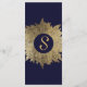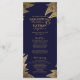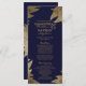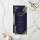 Design de ouro simples, moderno e elegante, com formato de folha desenhado em marinho azul, cartões de programa de casamento. Este design clássico e sofisticado é perfeito para o casal de competição de tendências e na moda. Personalize com sua própria mensagem na frente, assim como um monograma personalizado inicial no verso. Todas as impressão de fotos.