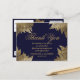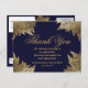 Design de ouro simples, moderno e elegante, com forma de folha desenhada em azul marinho, Obrigado Cartões-postais. Este design clássico e sofisticado é perfeito para qualquer evento de na moda e tendências, incluindo casamentos e ocasiões cotidianas. Toda impressão de fotos.