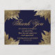 Folhas Douradas no Marinho Azul Obrigado Cartões p