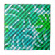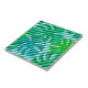 Um azulejo decorativo exótico tropical moderno, com folhas de Monstera sobre fundo estriado diagonal.